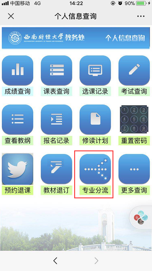 登录“永利14m在线登录官网教务处”微信公众号,点击“信息查询”->“个人信息”->“专业分流”->选择预报名专业->“确认报名”。