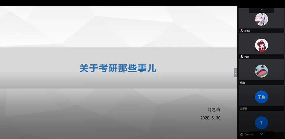 拓展素养。结合疫情期间学生对于舆情与学习的担忧,起航服务队本学期邀请学院负责心理工作马春蓉老师在给全院同学做了心理专场讲座。5月份,很多同学反馈想了解本科生保研及科研,通过邀请16级本科生朱永华及时解答了学生的疑惑。