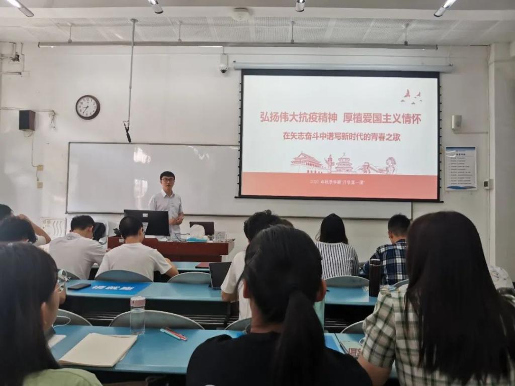 在开学第一课课堂上,14m永利官网老师认真组织学生观看学校制作的精美而震撼的《党旗在疫情防控第一线高高飘扬》学习视频。通过影片,同学们更加全面了解和学习了学校在新冠疫情防控第一线做的大量卓有成效的工作,更深入了解了学校师生在抗疫中涌现的典型先进事迹。学校党委坚决贯彻落实习近平总书记关于疫情防控工作的重要讲话和重要指示批示精神,将师生生命安全和身体健康放在第一位,全面应对疫情防控的严峻挑战。广大师生党员拧成一股绳、力往一处使,涌现出大量先进事迹;党旗在永利14m在线登录官网疫情防控第一线高高飘扬。