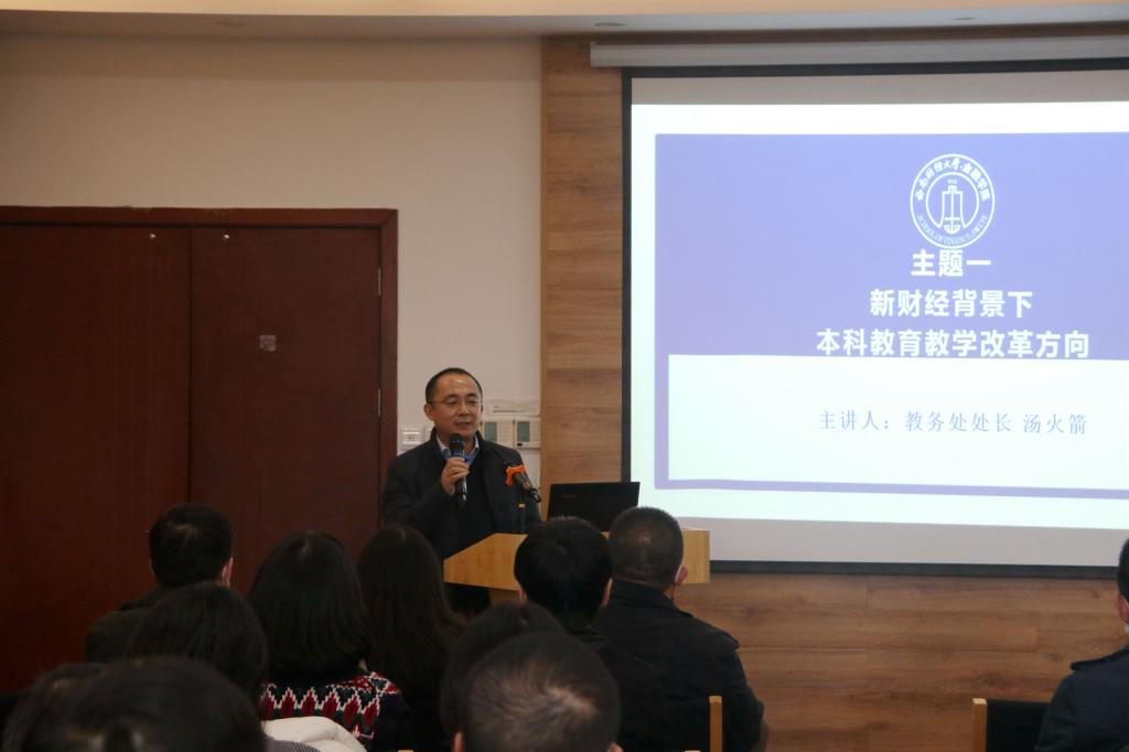 接下来教务处汤处长以“新财经背景下本科教育教学改革方向”为主题,首先介绍了学校在一流专业、一流课程、一流教材建设方面取得的成果;其次提出以开设科研训练课程、教师向学生开放科研项目、联合国内外高水平师资打造系列科研专题课程的方式探索科教融合模式;再次建议以金融科技、财富管理微专业建设为突破口,探索产教融合的新模式,希望14m永利官网以系列化和品牌化的定位进行教育教学改革,产生更多标志性成果。