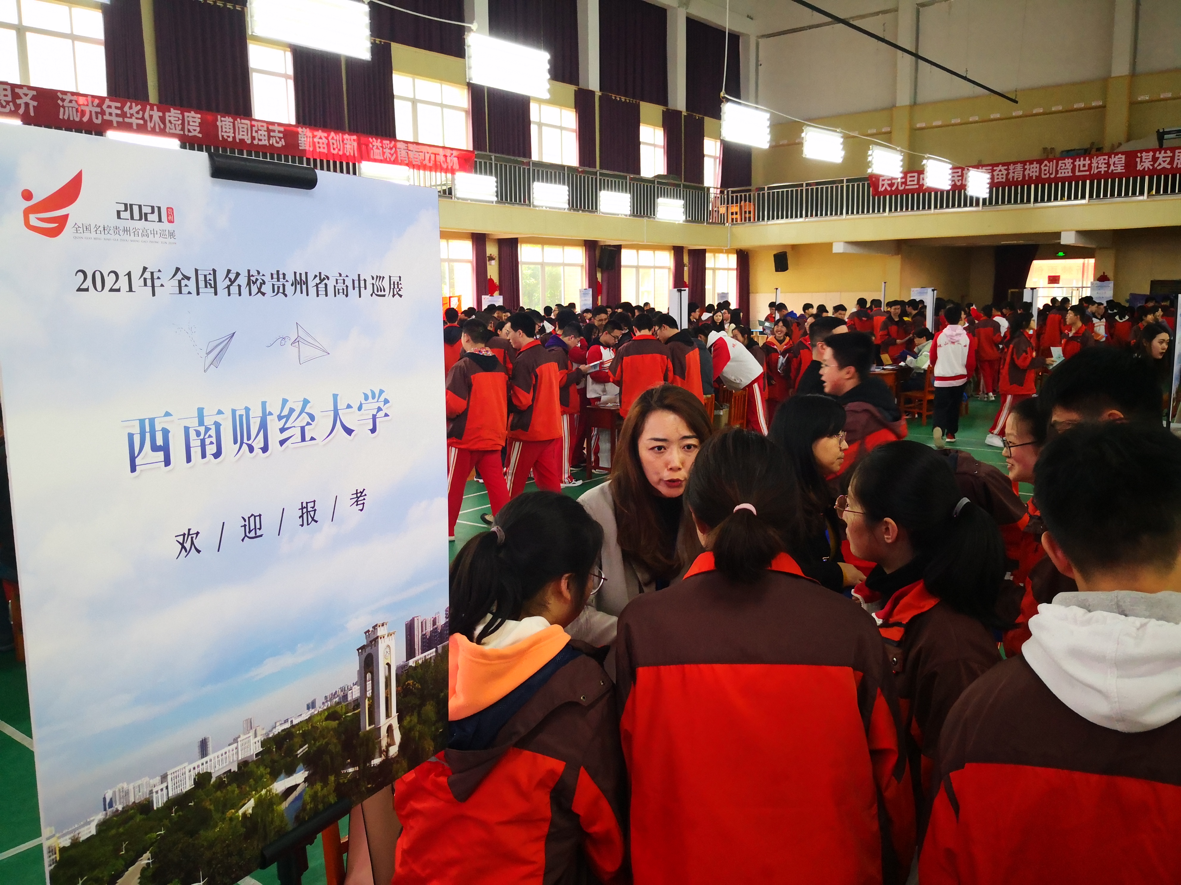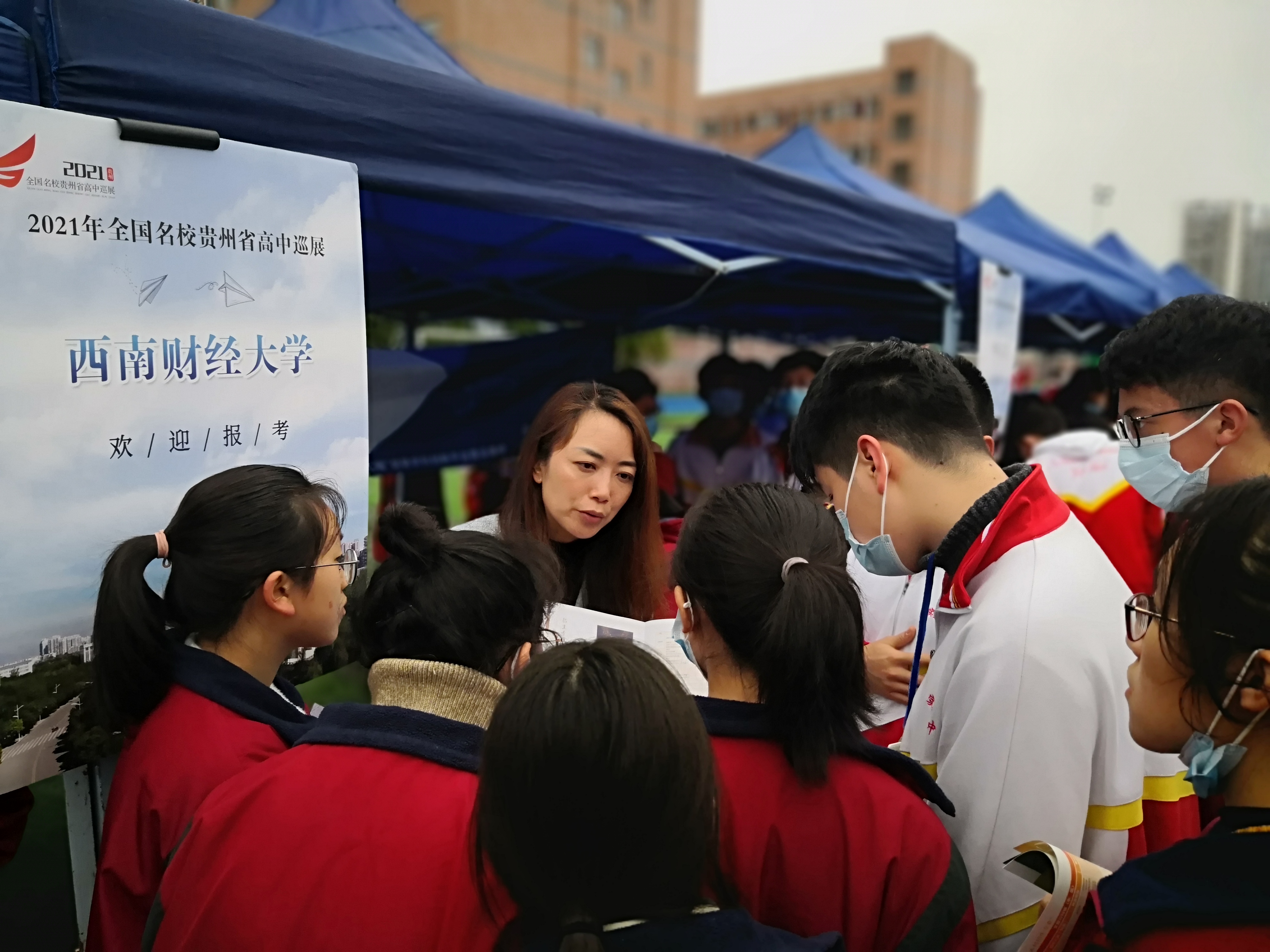老师们先后进入贵阳市观山湖区第一高级中学、贵阳一中新世界国际学校、贵阳市白云兴农中学、贵阳市清华中学、贵阳市第三实验中学、北京师范大学贵阳附属中学、遵义市南白中学、遵义市第四中学、遵义航天高级中学等9所高中开展招生咨询。