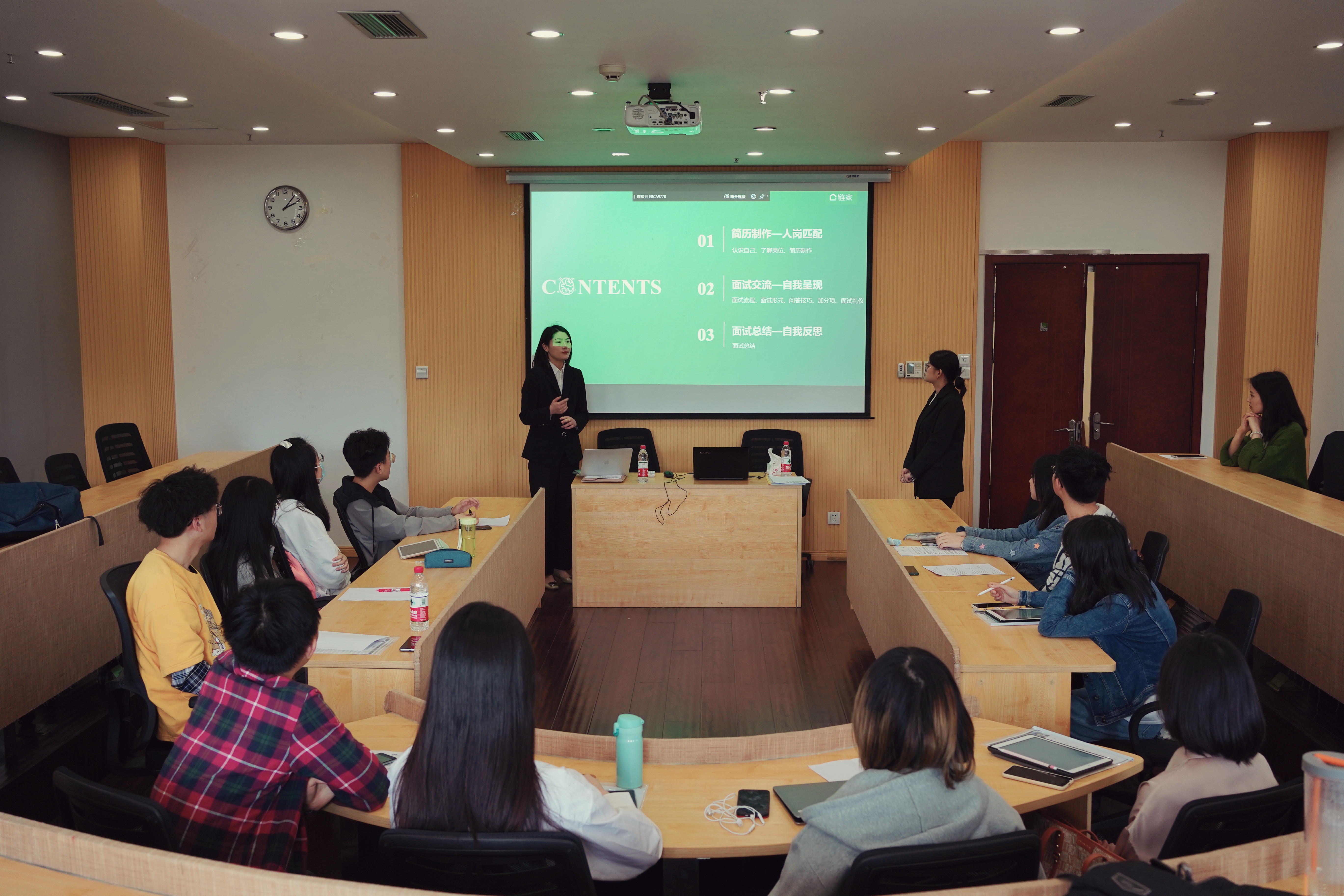 为帮助学生提升求职技能,让学生以更积极自信的姿态应对毕业生春季招聘和实习招聘,促进学生更充分更高质量就业,4月25日,14m永利官网校招HR面对面求职指导活动在格致楼317成功举行。本次活动邀请到了上海链家的资深HR吕佳祝经理和胡亚婷女士作为指导嘉宾。