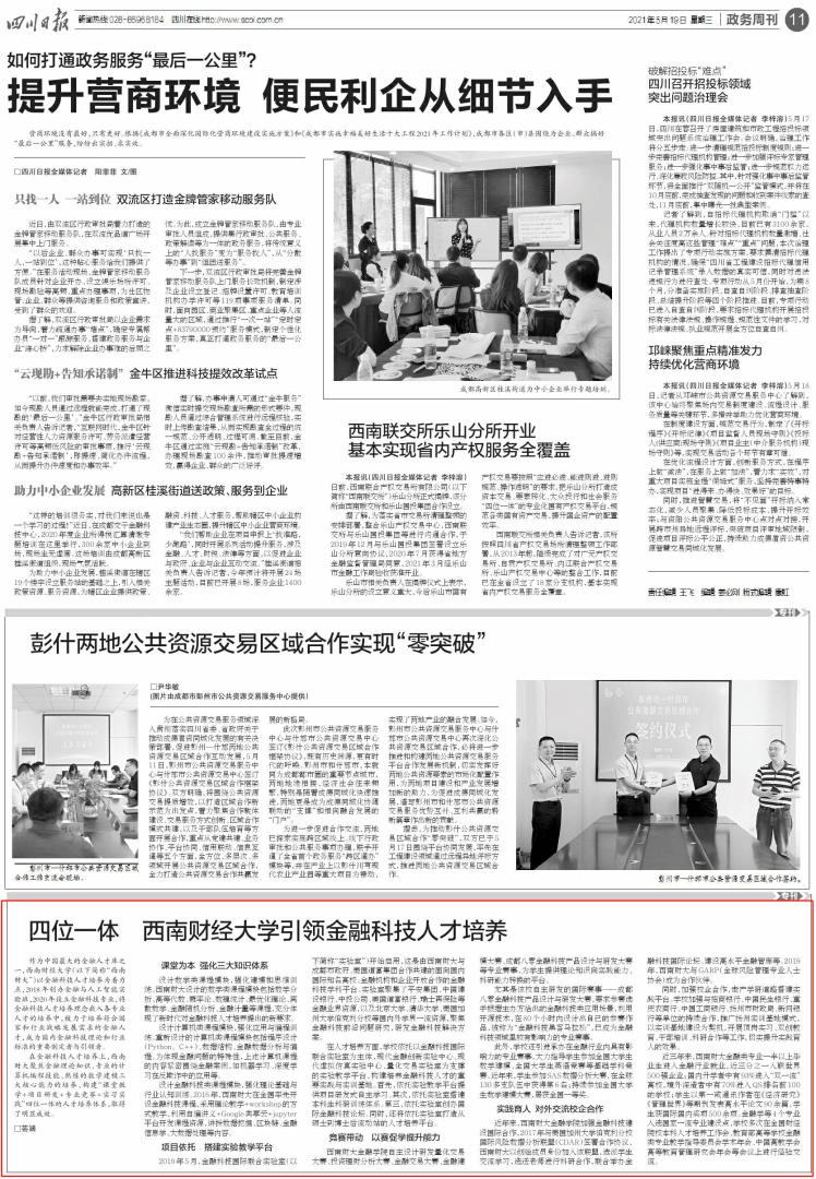 5月19日,《四川日报》以《四位一体,永利14m在线登录官网引领金融科技人才培养》为题,报道14m永利官网金融科技人才培养创新模式。