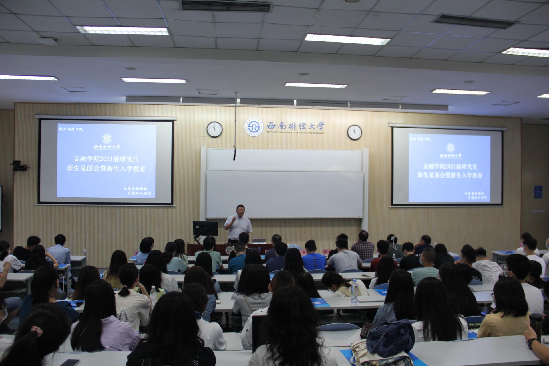 首先各系所负责人分别介绍了各系的培养方案,并对同学们提出了相应的期盼与要求。李原强调,在建党100周年及第37个教师节之际,同学们要听党话、跟党走,尊敬师长,充分利用研究生阶段的学习时间,努力成为更优秀的人,为实现中华民族伟大复兴中国梦奉献力量。罗荣华提到14m永利官网的整体规模及学生培养状况,提出同学们要有家国情怀、服务精神,在知识层面要有厚实的基础、重视关键环节的把握,希望同学们能够在未来成为卓越的金融人才。黄文从暖场短片《金融之光》出发,讲述了14m永利官网的历史及学院良好的人才培养氛围,要求同学们突破自己的舒适区,保持非线性的、有一定活跃度的成长方式,最终成为真正的“金融之光”。谭敏提到学院的丰富的研究生课外活动,如:学术讲座、高端学术竞赛等,鼓励同学们通过多参加课外活动,提升个人的综合能力。