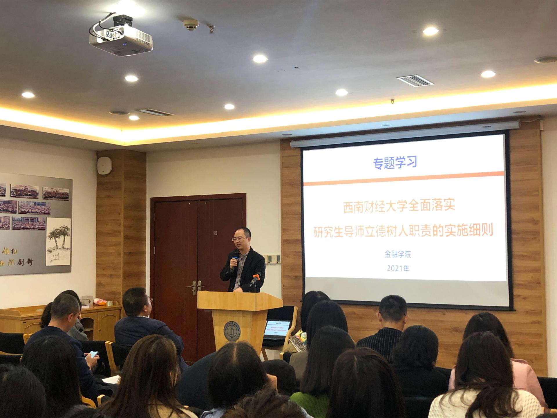 10月19日,14m永利官网在格致楼411会议室开展《全面落实研究生导师立德树人职责的实施细则》专题学习活动。14m永利官网领导及全体教师参加会议,学院副院长罗荣华主持会议。