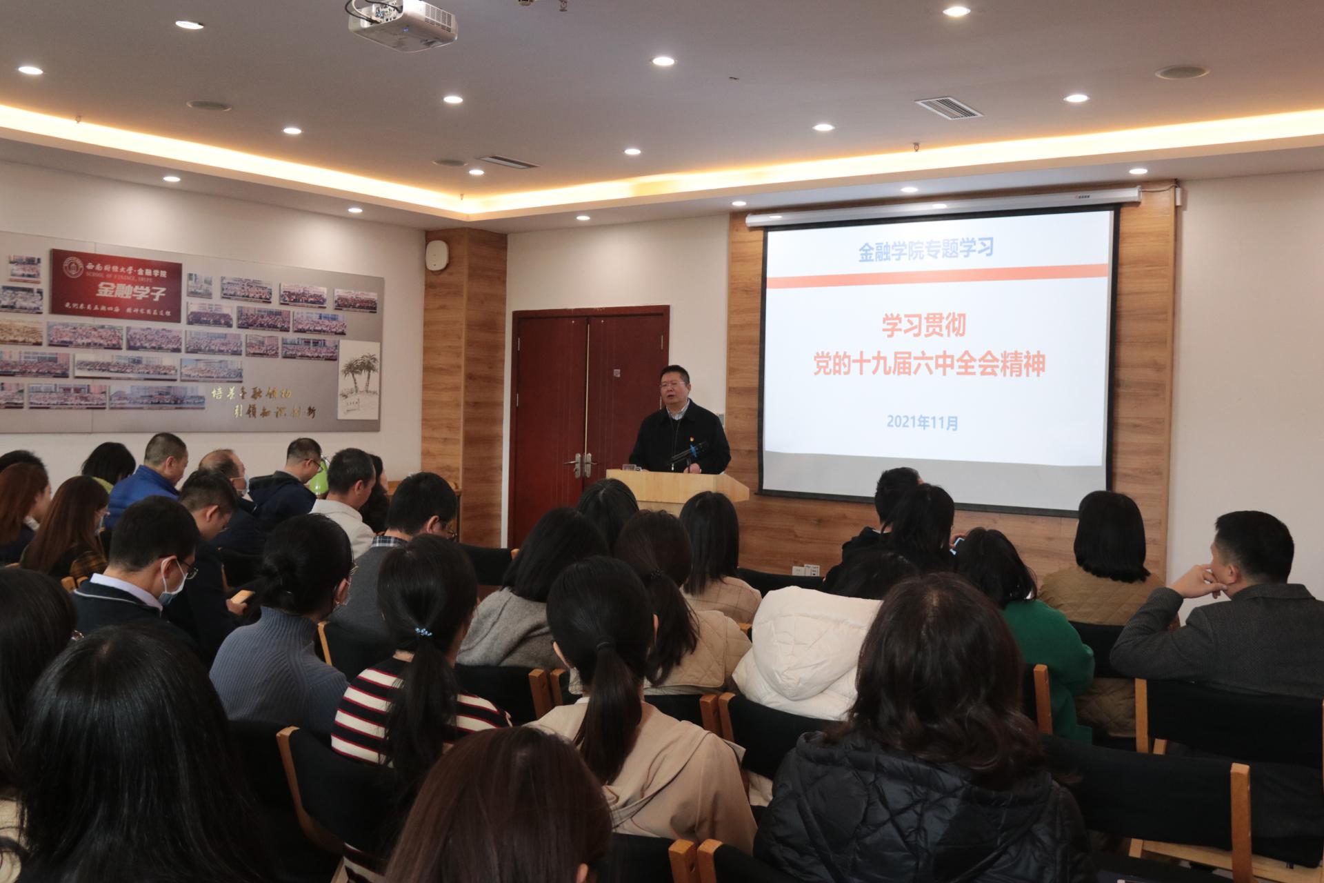 11月23日,14m永利官网在格致楼411会议室举行教职工政治理论学习,在之前自学基础上开展集中学习,专题学习贯彻党的十九届六中全会精神;全院教职工参加学习,学院党委书记李原主持学习。