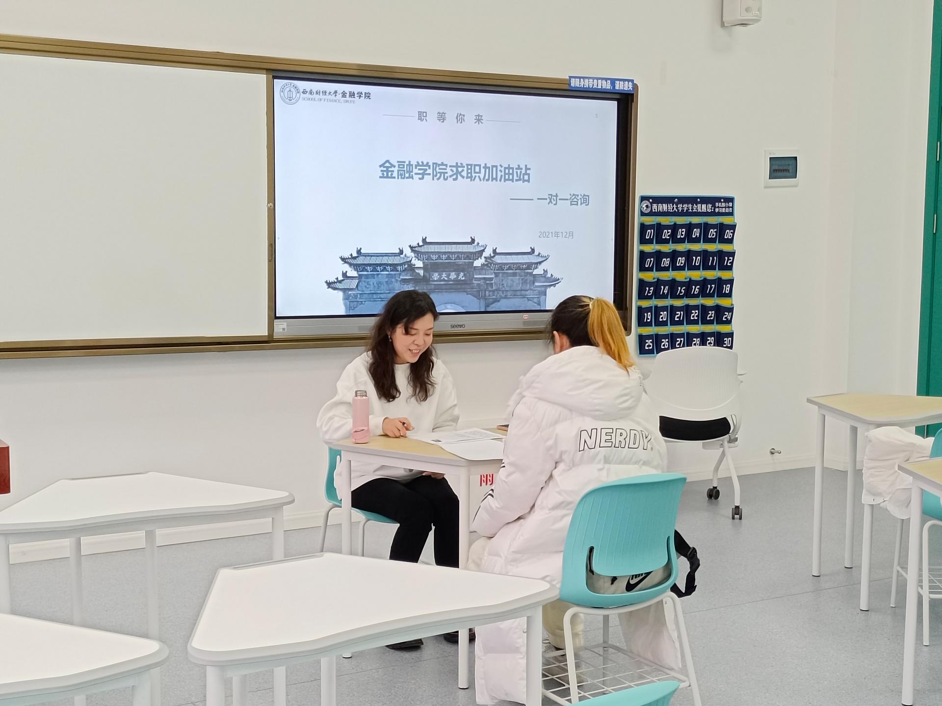 12月28日,中信证券四川分公司人力资源负责人李梦诗、智联招聘校园及海外事业部西南区渠道市场负责人李鑫指导学生进行无领导小组模拟面试和结构化模拟面试,力求还原真实应聘场景,并在模拟面试后对同学们进行点评指导,帮助学生总结优势、发现问题、找到方向,多维度提升面试技能。此外,前腾讯高级招聘经理、人力资源顾问秦雪、经济学院的王芳老师和财税学院刘余老师与学生进行一对一咨询辅导,针对同学们在个人规划、简历书写、求职技能提升等各方面的辅导诉求,各位老师倾囊相授,帮助同学们走出困境,通过充分的交流,给予学生技术和心理上的支持、为其指明下一阶段方向。