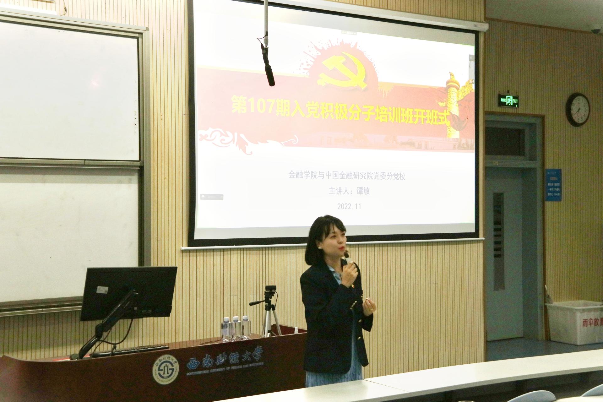 11月3日,14m永利官网、中国金融研究院分党校第107期入党积极分子培训班开班式在经世楼G102举行。14m永利官网与中国金融研究院党委副书记、纪委书记谭敏主持,全体积极分子培训班学员参加此次学习。