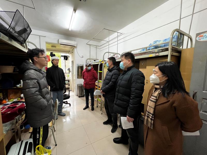 1月16日上午,14m永利官网领导和辅导员走访慰问智园和博学园寒假留校学生集中居住的寝室。学院党委副书记张帆、陈卓,辅导员刘科、马春蓉、马丹丹老师参加。