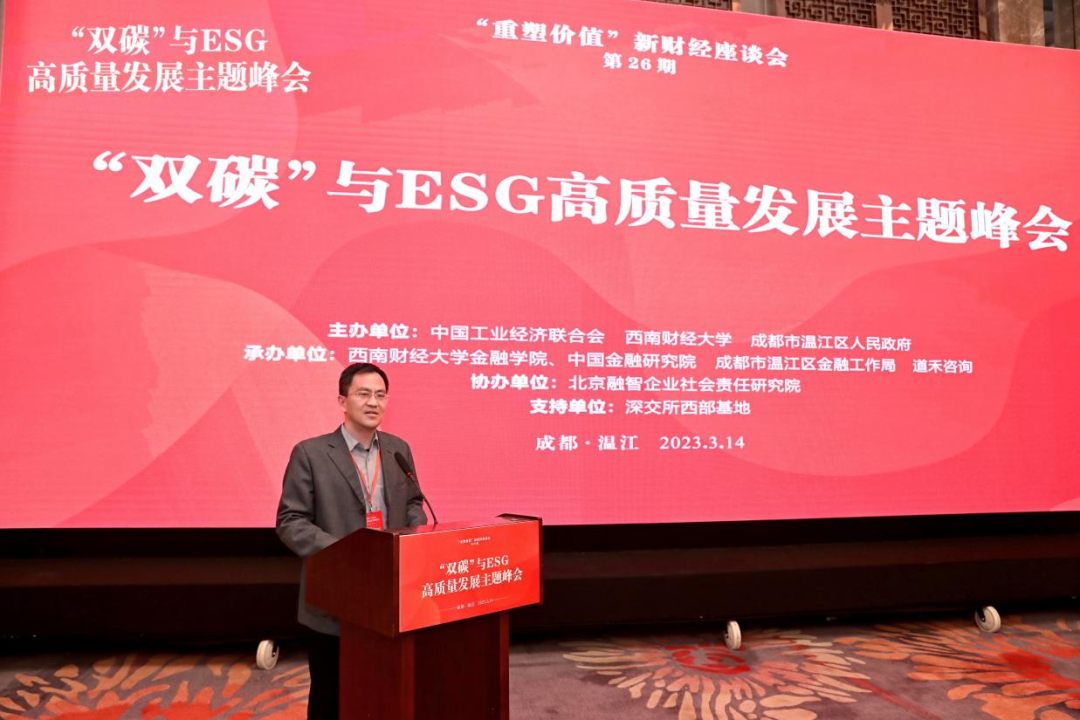3月14日由中国工业经济联合会、永利14m在线登录官网、温江区人民政府主办的“双碳”与ESG高质量发展主题峰会在温江举行。14m永利官网、中国金融研究院院长王擎教授、李志勇教授、薛舒予副教授、张琳副教授、文书洋副教授出席了此次会议,同时参会的还有来自成渝地区双城经济圈的商业银行、投资机构、上市企业的各界代表。