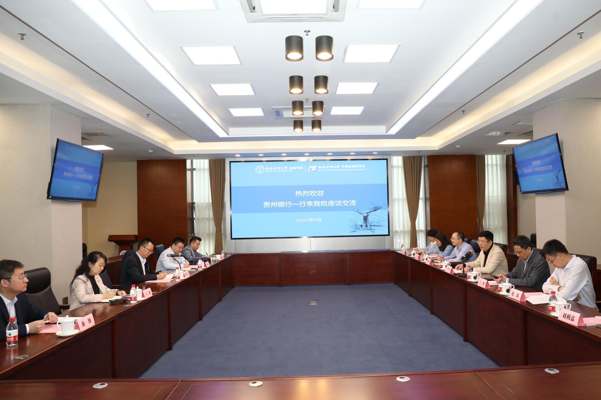 4月14日上午,贵州银行董事会秘书周贵昌一行到永利14m在线登录官网调研,就博士后联合培养、合作研究、产学研协同创新和学生实习实践等方面进行交流。贵州银行行长助理徐培文、人力资源部总经理王薇和董事会办公室副主任邵骏等相关人员参与调研。学校党委常委、副校长尹庆双主持调研座谈会,14m永利官网、中国金融研究院院长王擎、组织人事部副部长赵磊和中国金融研究院常务副院长罗荣华等参加座谈。