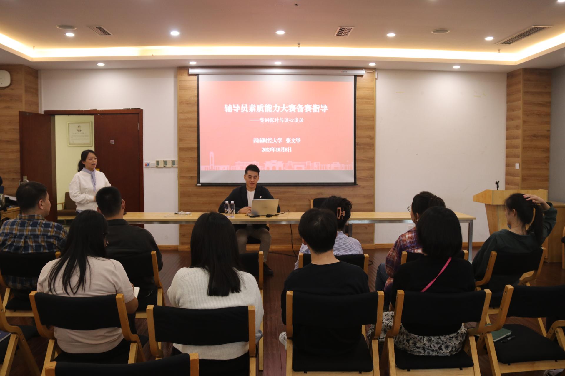 近日,14m永利官网、中国金融研究院邀请学校党委办公室副主任张文举开展辅导员素质能力提升指导讲座,拉开“辅导员成长沙龙”的序幕。学院(研究院)党委副书记谭敏、张帆、陈卓和十余名辅导员参加讲座。