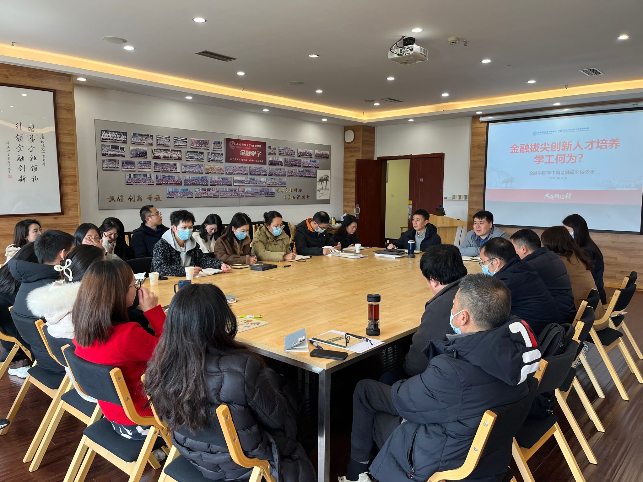 学院(研究院)党委组织全体辅导员就如何在金融强国建设背景下加强金融人才队伍建设进行教育思想大讨论,以“培养金融拔尖创新人才,学工何为”为主题,围绕“培养什么人、怎样培养人、为谁培养人”的根本问题,结合辅导员工作职责,从思想政治素养提升、学习能力提升、综合能力发展、职业发展规划、人文关怀等方面充分讨论,充分发挥学工队伍在人才培养中的引领、育人作用,为培养金融拔尖创新人才贡献学工力量。
