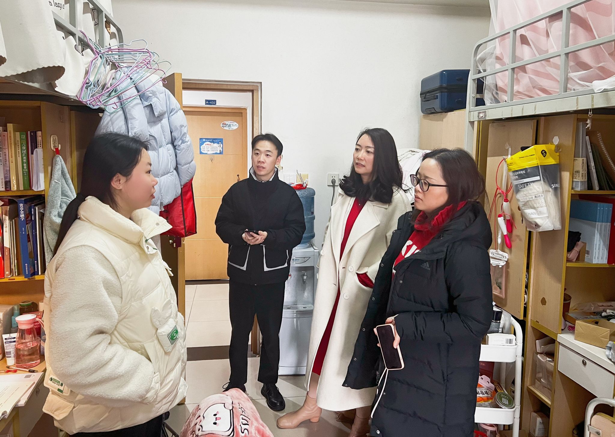 走访寝室过程中,学院(研究院)辅导员深入学生宿舍,与学生就学业情况、身心健康、活动娱乐等方面进行了亲切交谈,细心嘱咐学生们务必注意寝室安全。声声叮嘱,饱含关怀;句句话语,情谊满满。