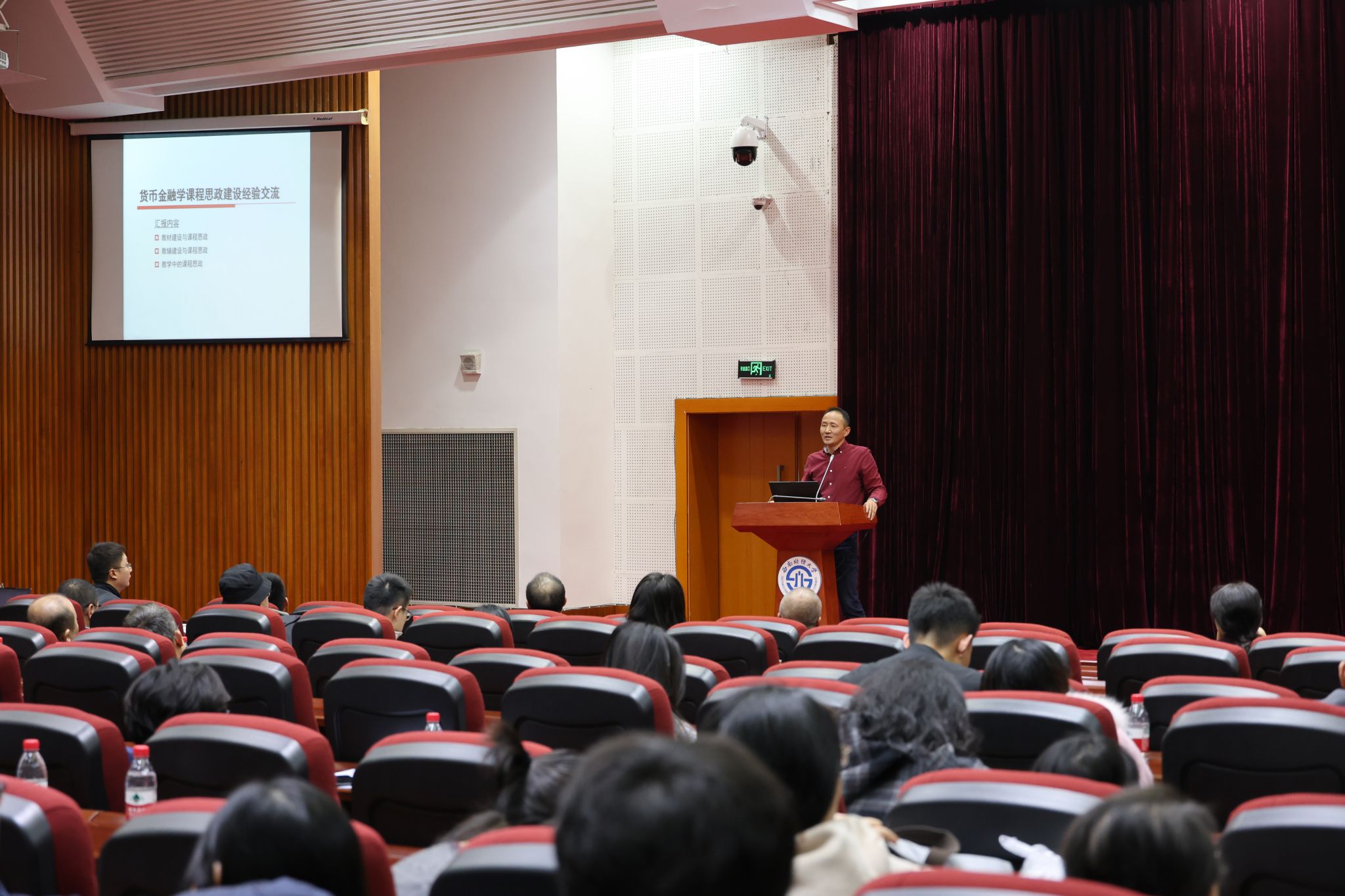 14m永利官网金融系主任、货币金融学课程组组长翁舟杰教授以“货币金融学课程思政建设”为题,围绕“教材建设与课程思政”“教辅建设与课程思政”以及“教学中的课程思政”三个环节,为全院教师带来一场丰富而生动的课程思政教学实践分享。他指出,做好课程思政建设,不仅要关注课程内容上的更新,更要紧跟教育理念和教学方式的转变。其次,翁舟杰教授向全体教师分享了国家级一流本科课程“货币金融学”配套教材以及课程思政案例集的“焕新”历程,通过一个又一个生动的概念拓展和案例引入,讲述了他在编写过程中如何凸显中国金融实际,讲述中国金融故事的教材底色。接着,翁舟杰教授还分享了AI技术融入教学辅助的案例,现场演示了AI赋能货币金融学课程教学,为师生提供个性化和智能化教学和学习体验的具体应用。最后,翁舟杰教授详细介绍了如何在课堂教学过程中做到课程、时事和思政有机结合,通过讲述“金融市场和机构的国际化”“中国的汇率制度改革发展成就”以及“中国的银行体系改革发展成就”等内容,挖掘思政元素进行教学拓展,强调了在教学理念上的与时俱进和润物无声。