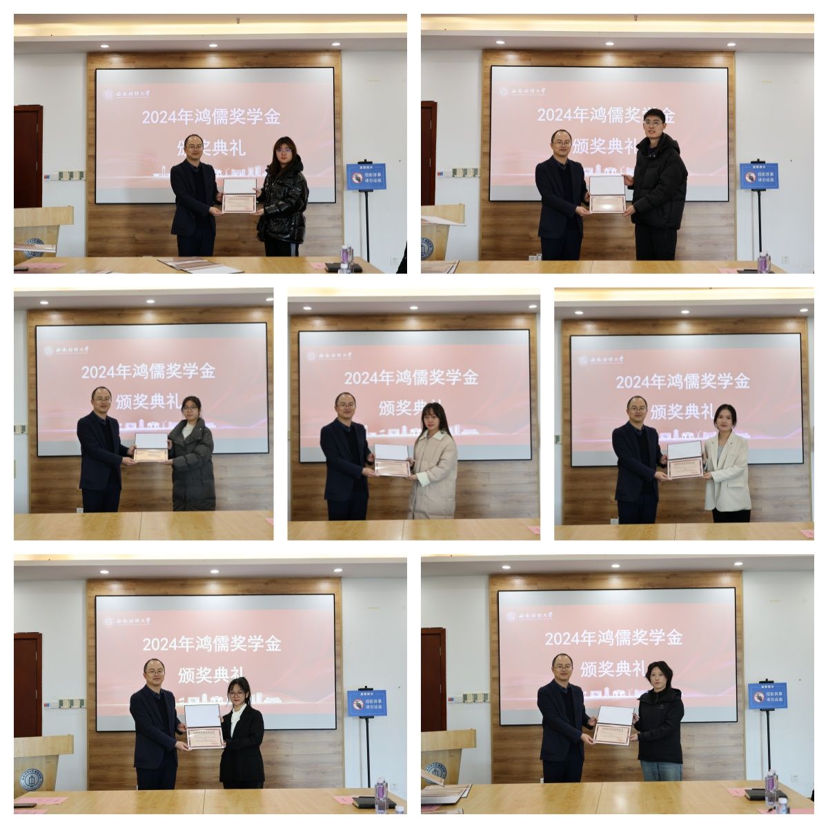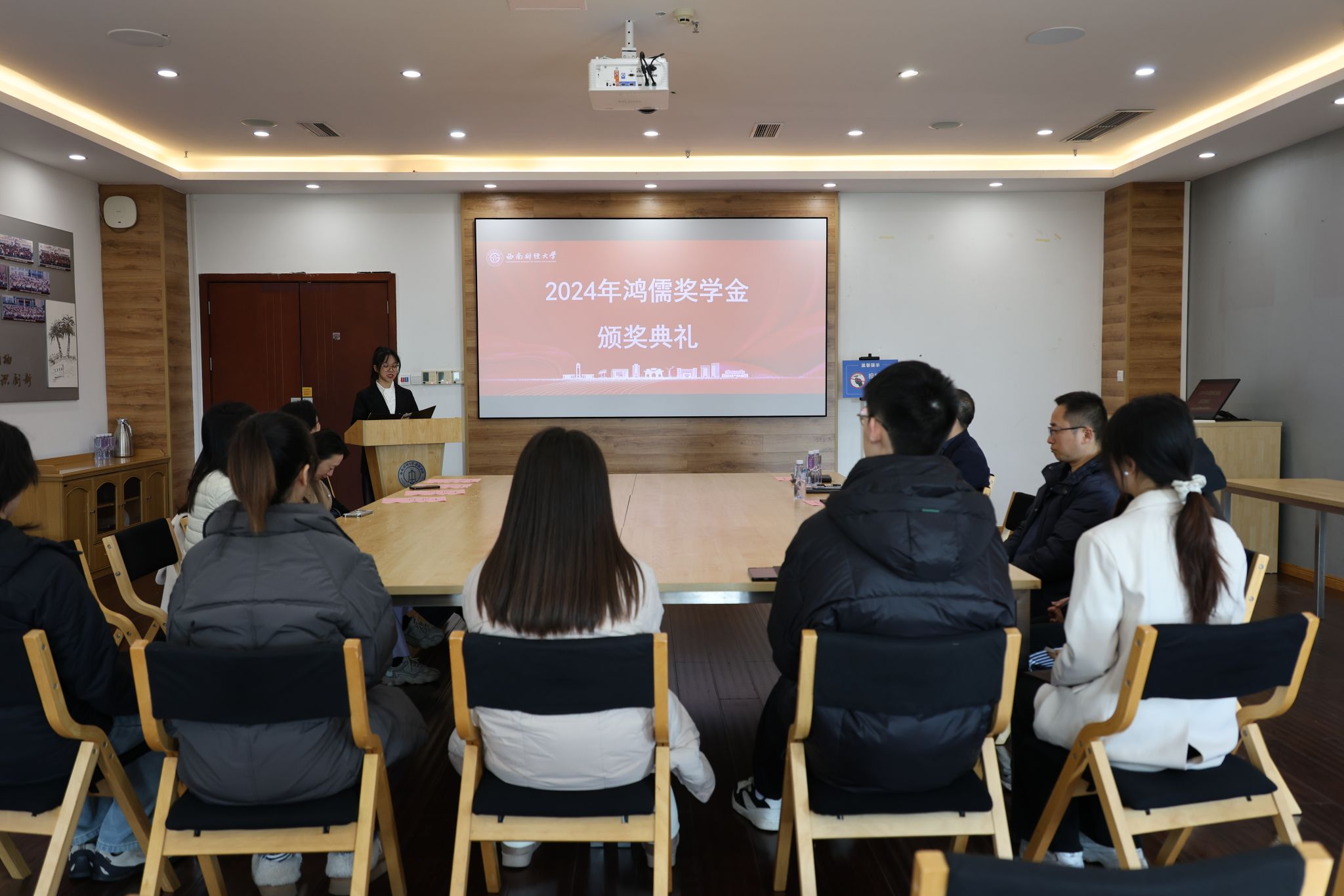 陈卓介绍了2024年鸿儒奖学金的评审情况,并宣布获奖名单。罗荣华为获奖学生颁奖。