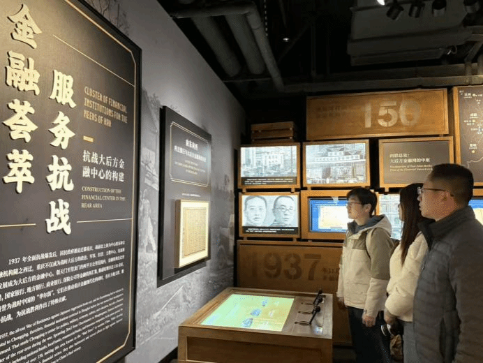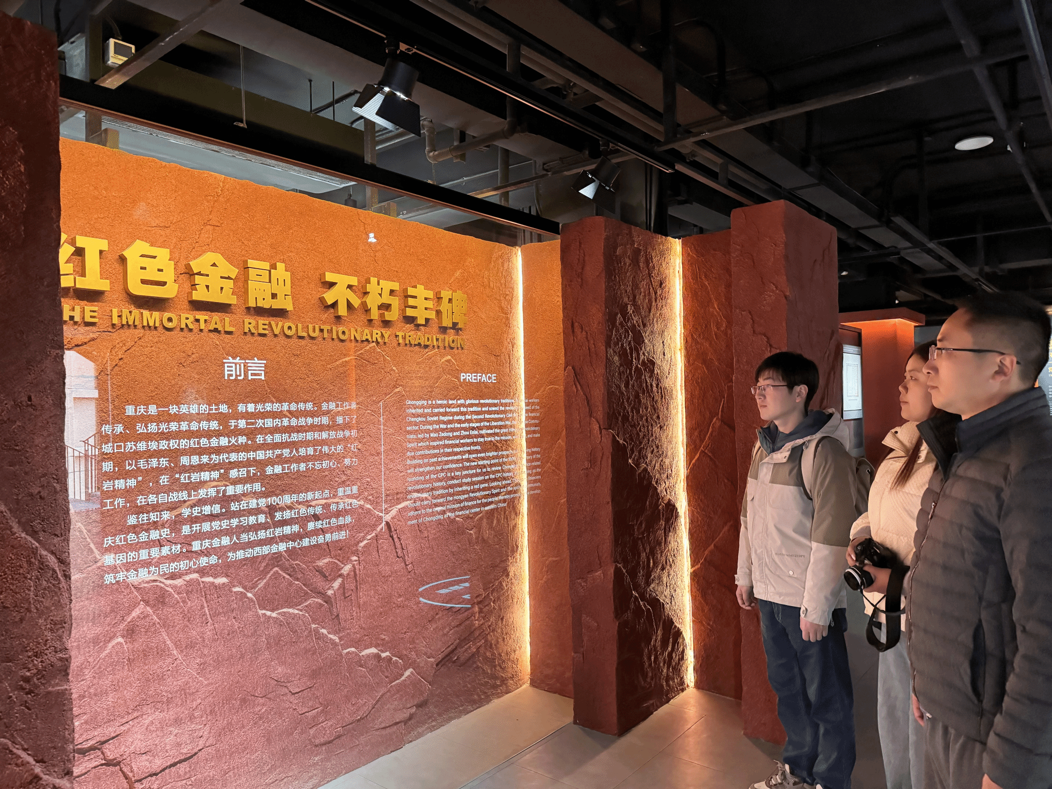 在重庆金融历史博物馆,学院(研究院)师生党员从“近代金融萌芽”“抗战金融中心”“改革开放浪潮”“新时代金融创新”等板块,系统了解了我国西南地区银行业、保险业和证券业等金融行业的发展历史。在“红色金融”专题展前,师生一行深刻感受了抗战时期中国共产党在渝领导的金融斗争红色历史。师生党员深感金融人才教育需要红色基因的传承与弘扬,让红色金融文化成为推动当代金融人才培养的重要部分。
