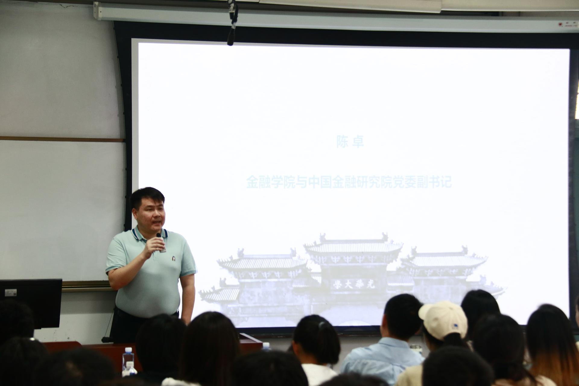 陈卓祝贺本次参加2023年“菁融计划”暑期实习的同学满载而归,简要回顾了“菁融计划”项目的成立及取得的成就。他指出,学院(研究院)积极开展“访企拓岗促就业”专项行动,与二十余家单位签订实习基地合作协议,旨在为更多的同学提供高质量的实习岗位,帮助同学们进一步明晰职业生涯规划、提升就业能力。