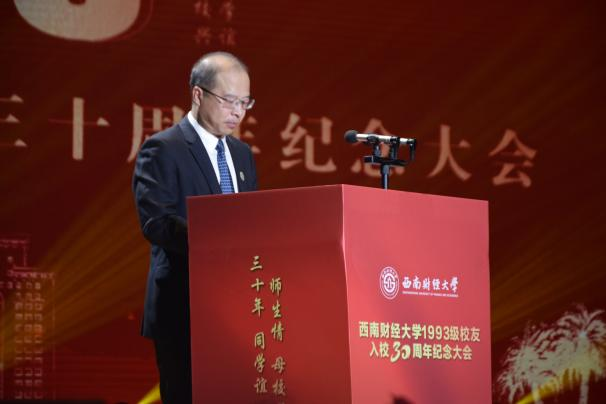 纪念大会在校友重聚的喜悦中正式开始。学校党委副书记、校长李永强教授致辞,热忱欢迎93级校友重返母校。他真切回溯了三十年来学校的发展变化和93级校友求学的点滴往事,强调学校正着力推进一流学科培优、财经科技创新、人才引领支撑,为加快建设财经特色鲜明的世界一流大学开辟发展赛道,积蓄发展势能。三十年来,93级校友实现了从学业到事业的转变,在各自的领域矢志追求,他希望各位校友一如既往地关心和支持母校的建设与发展,与母校一起全面推进新财经战略升级,共同写好强国建设的精彩篇章。