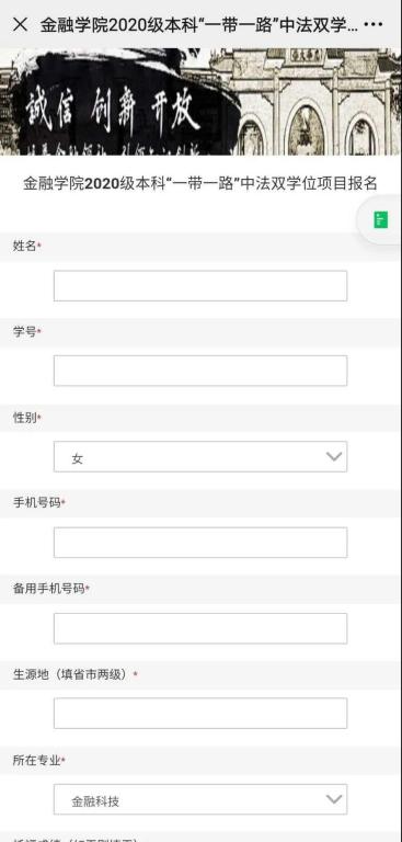 为助力“一带一路”建设发展,培养在“一带一路”沿线各国和国际组织从事金融、商业运作和管理的高层次、复合型、国际化金融经济管理专业人才,为国际组织培养储备人才,14m永利官网与法国里昂商学院签署“一带一路”本科双学位合作项目协议,合作建设“一带一路”中法双学位项目,今年首次面向14m永利官网2020级新生选拔。